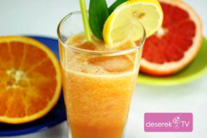 Dziś kolejny przepis na wspaniały orzeźwiający koktajl na upalne dni, a jednocześnie koktajl odpornościowy. Jednocześnie gasi pragnienie w upalny dzień i uodparnia nasz organizm. Warto go stosować także w początkowym stadium przeziębienia. Wspaniały aromatyczny smak południowych owoców z nutką dalekiego wschodu. Prezentowany przepis pokazuje jak w domowych warunkach zrobić koktajl owocowy bez sokowirówki i bez wyciskarki do soku.